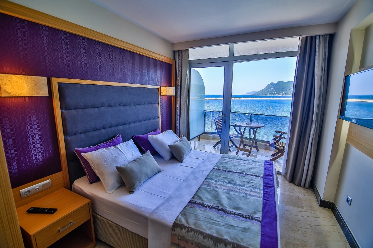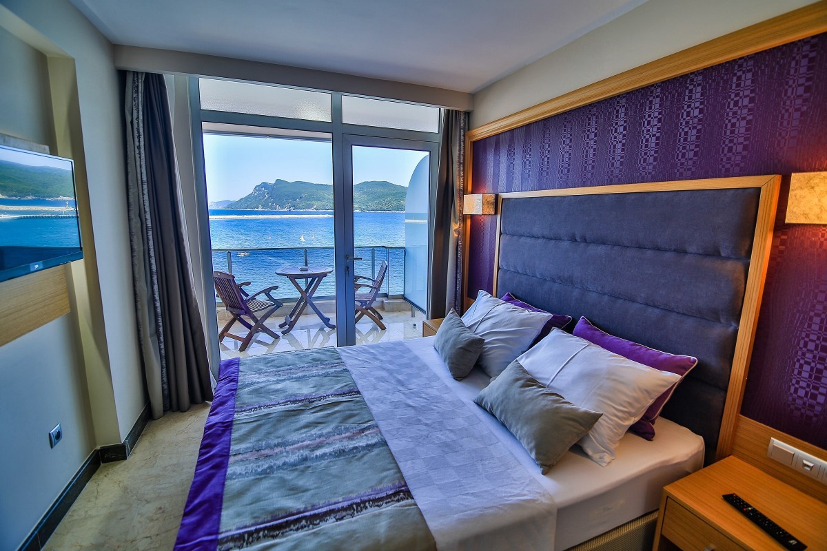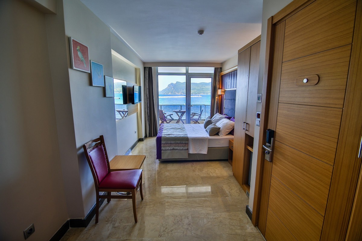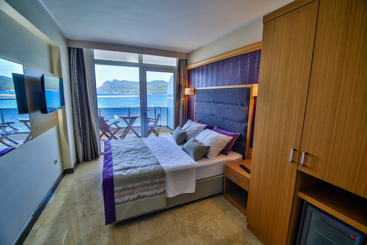 Amasra Sahil Otel Deniz manzaralı aile odalarımızda maksimum 3 kişi konaklayabilir. Balkondan plaj ve deniz manzarası izlenebilmektedir.